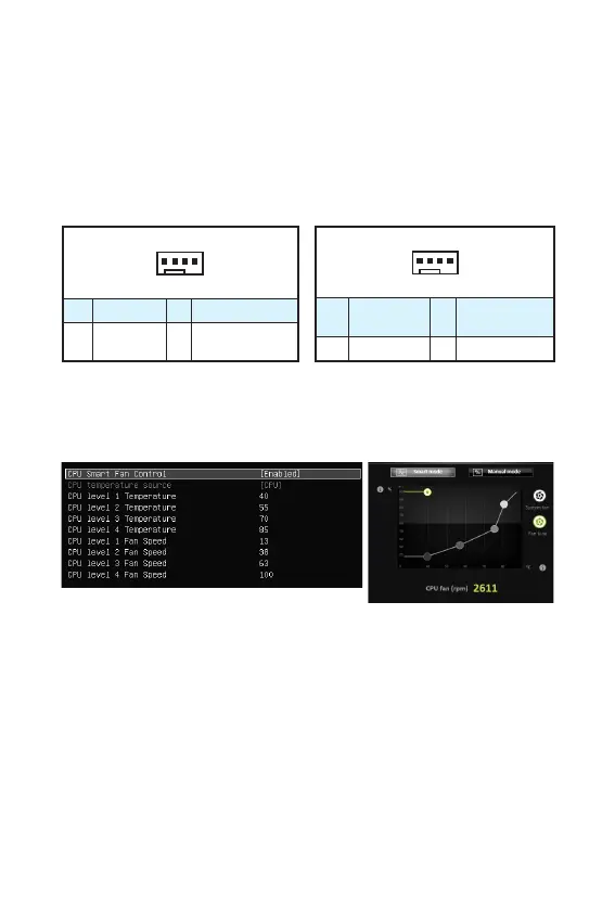 Connecteurs pour ventilateurs en mode PWM Connecteurs pour ventilateurs en mode tension