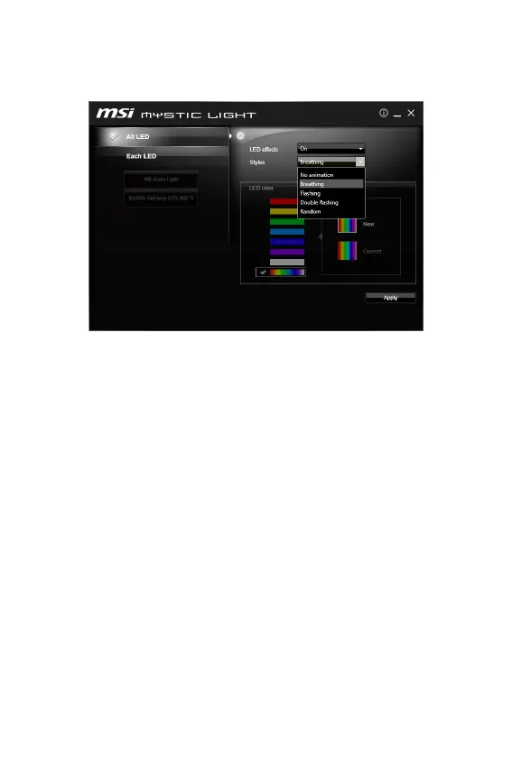 Lapplication MYSTIC LIGHT vous permet de contrôler les indicateurs LED sur votre