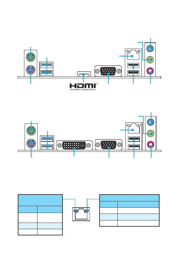 MSI H110M PRO-VD PLUS - LAN Port LED Zustandstabelle; Rückseite E;A