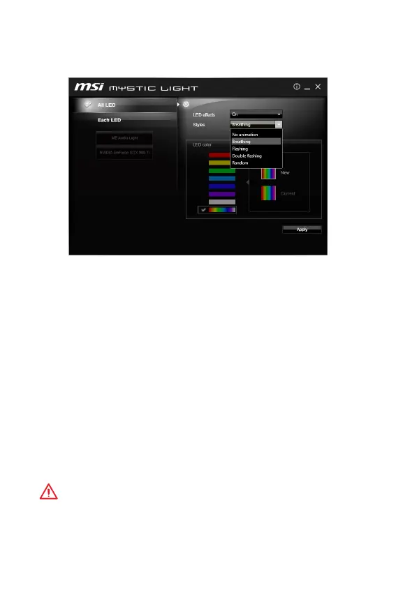 animation. При изменении режима Audio line в MYSTIC LIGHT и нажатии