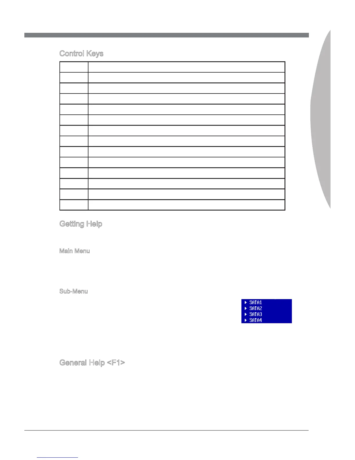 The BIOS setup program provdes a General Help screen. You can call up ths screen