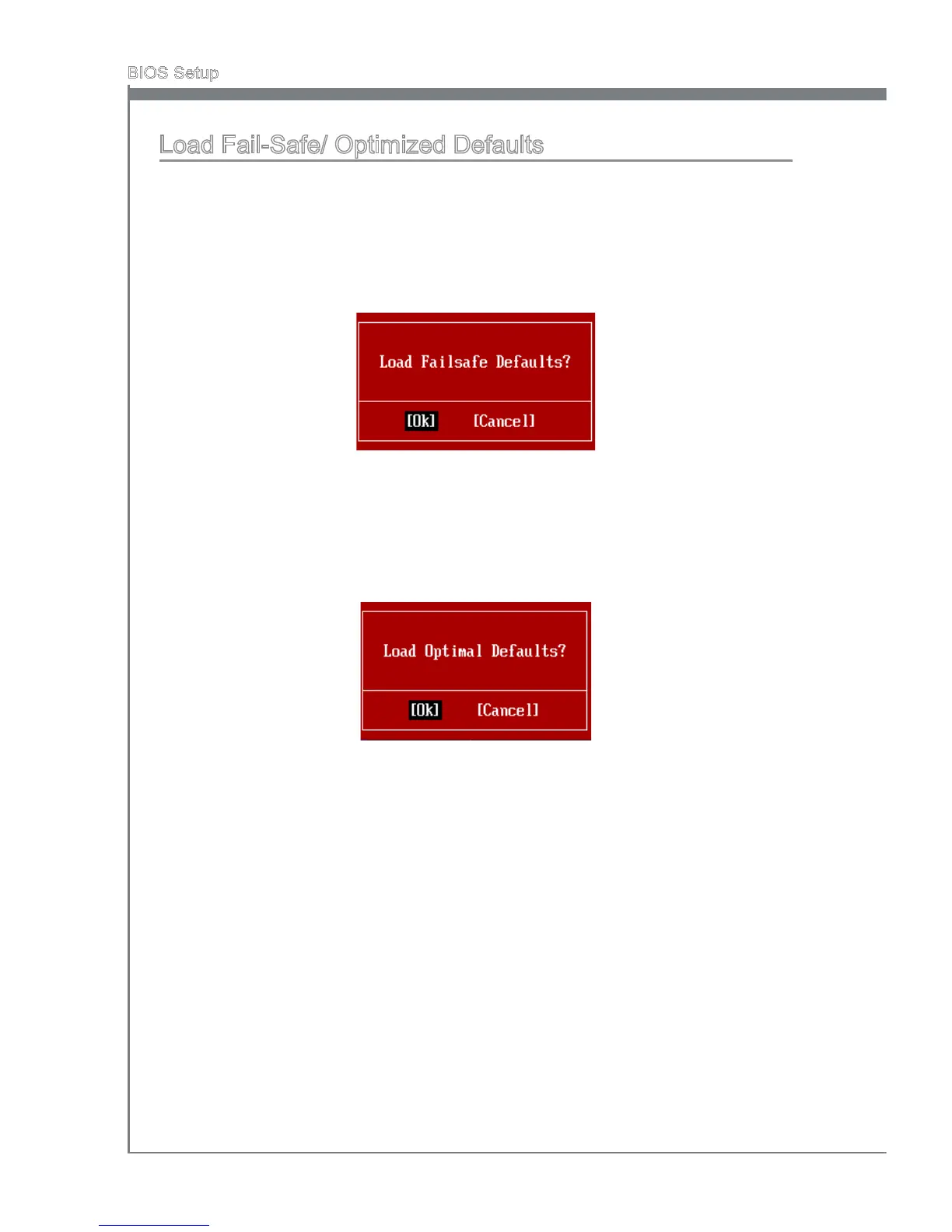 When you select Load Fal-Safe Defaults, a message as below appears: