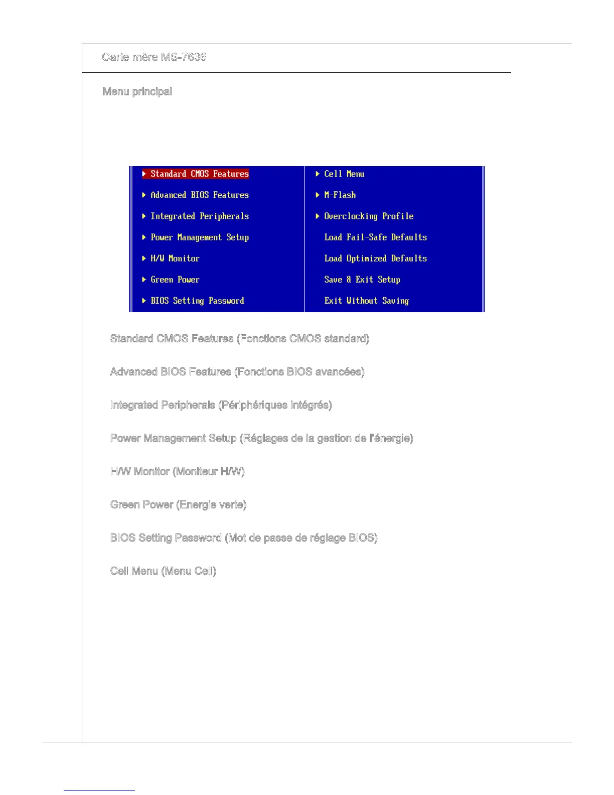 Une  fos  entré  dans  l’unté  de  réglages  BIOS  CMOS,  le  menu  prncpal  appaît  sur