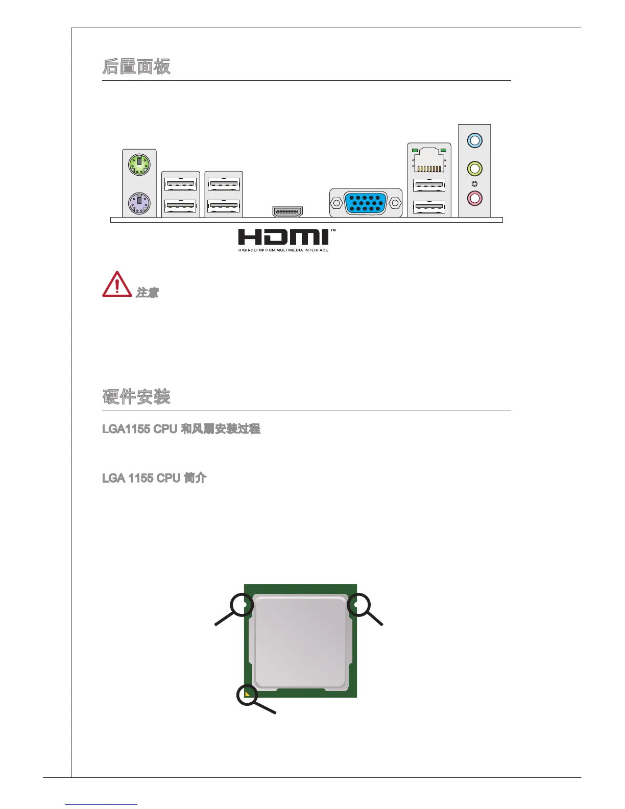 MSI H6M-E33 (G3) - 后置面板; 硬件安装