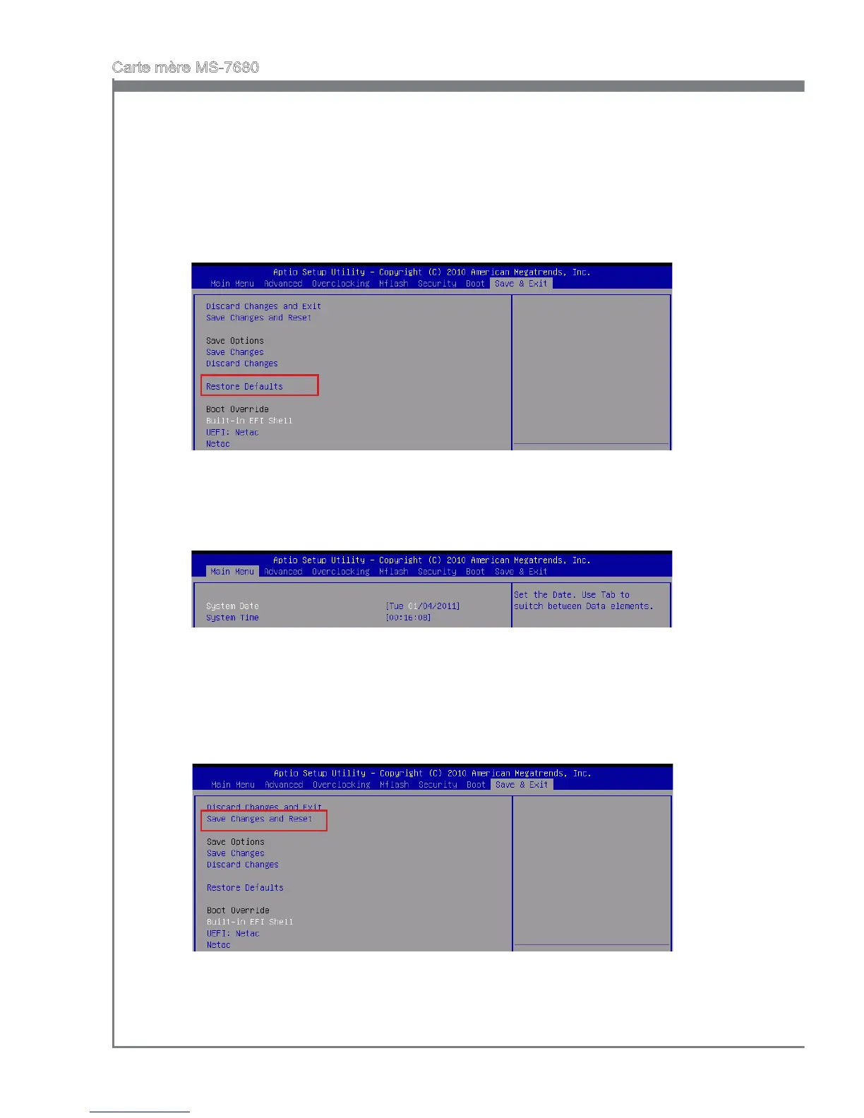 cliquez <Enter> an de conserver les congurations et quitter l’utilitaire de réglage