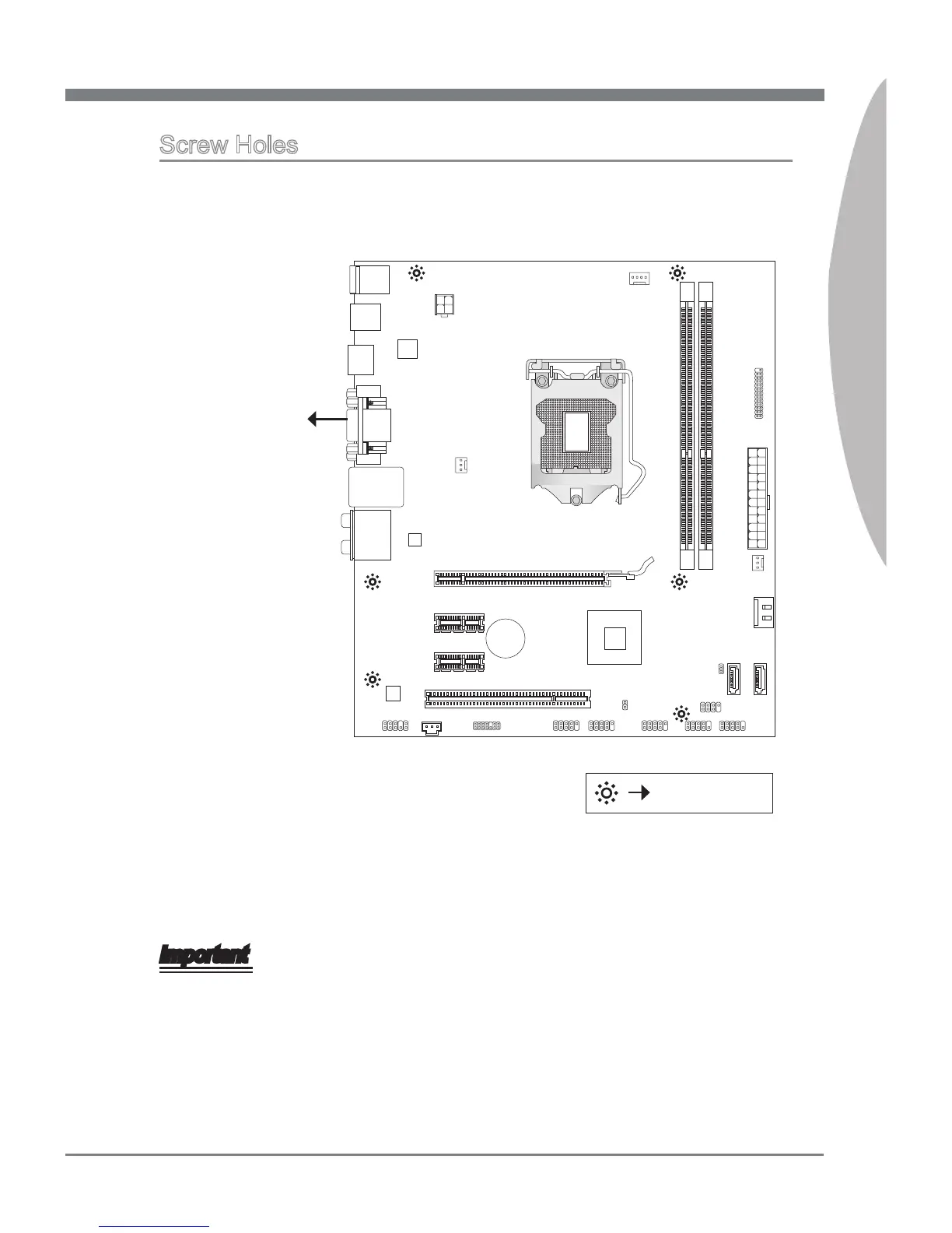correct direction. The locations of screws holes on the mainboard are shown as below.