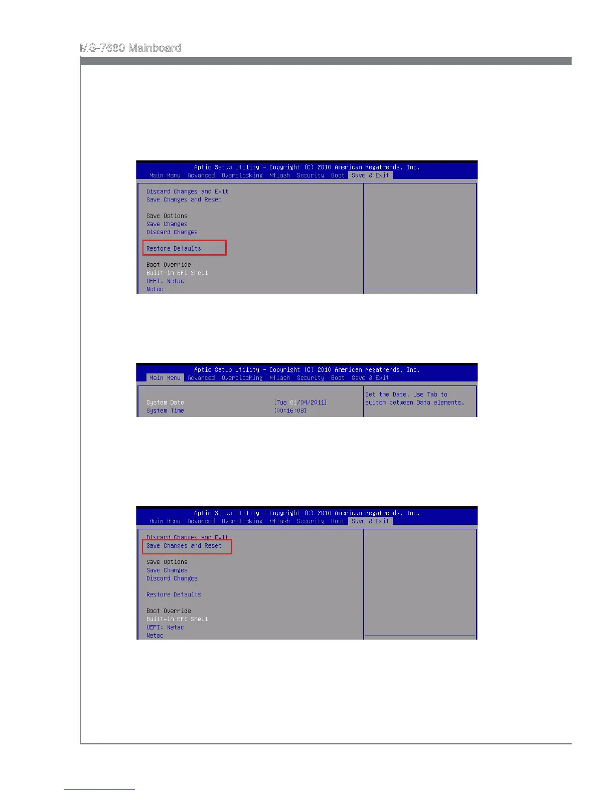 Defaults] in [Save & Exit] menu, and press <Enter>. A pop-up message will appear,