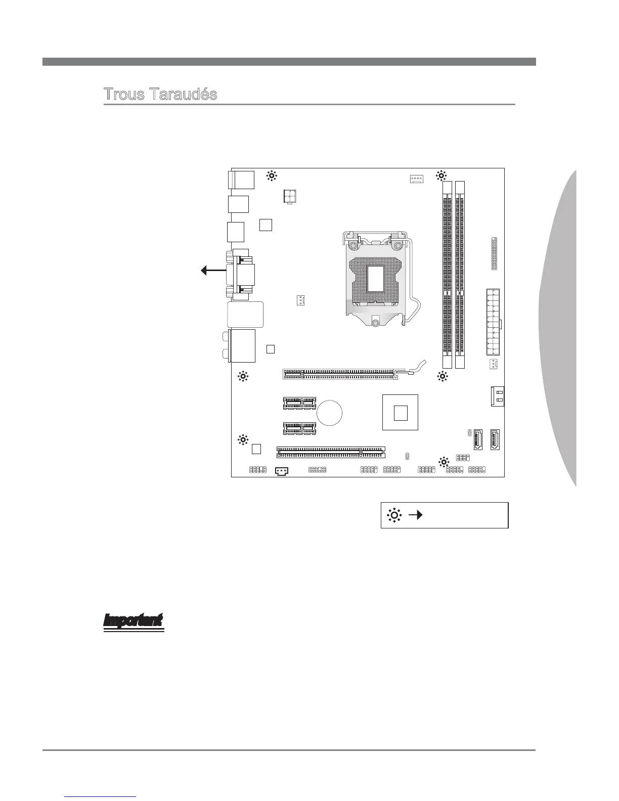 Pour prévenir les endommages à la carte mère, il est interdit de mettre toute sorte de