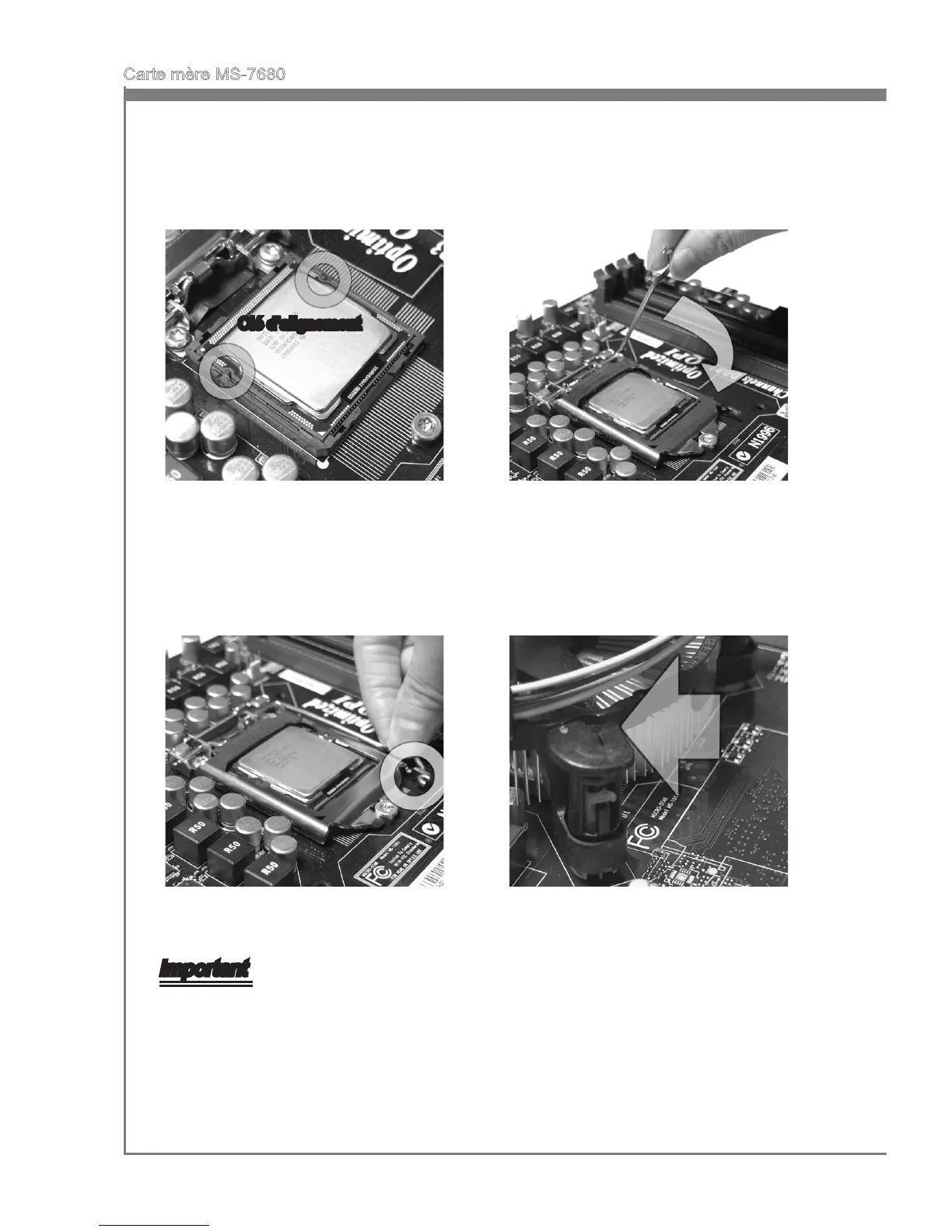 Ne touchez pas les pins du CPU an d’éviter tout dommage.