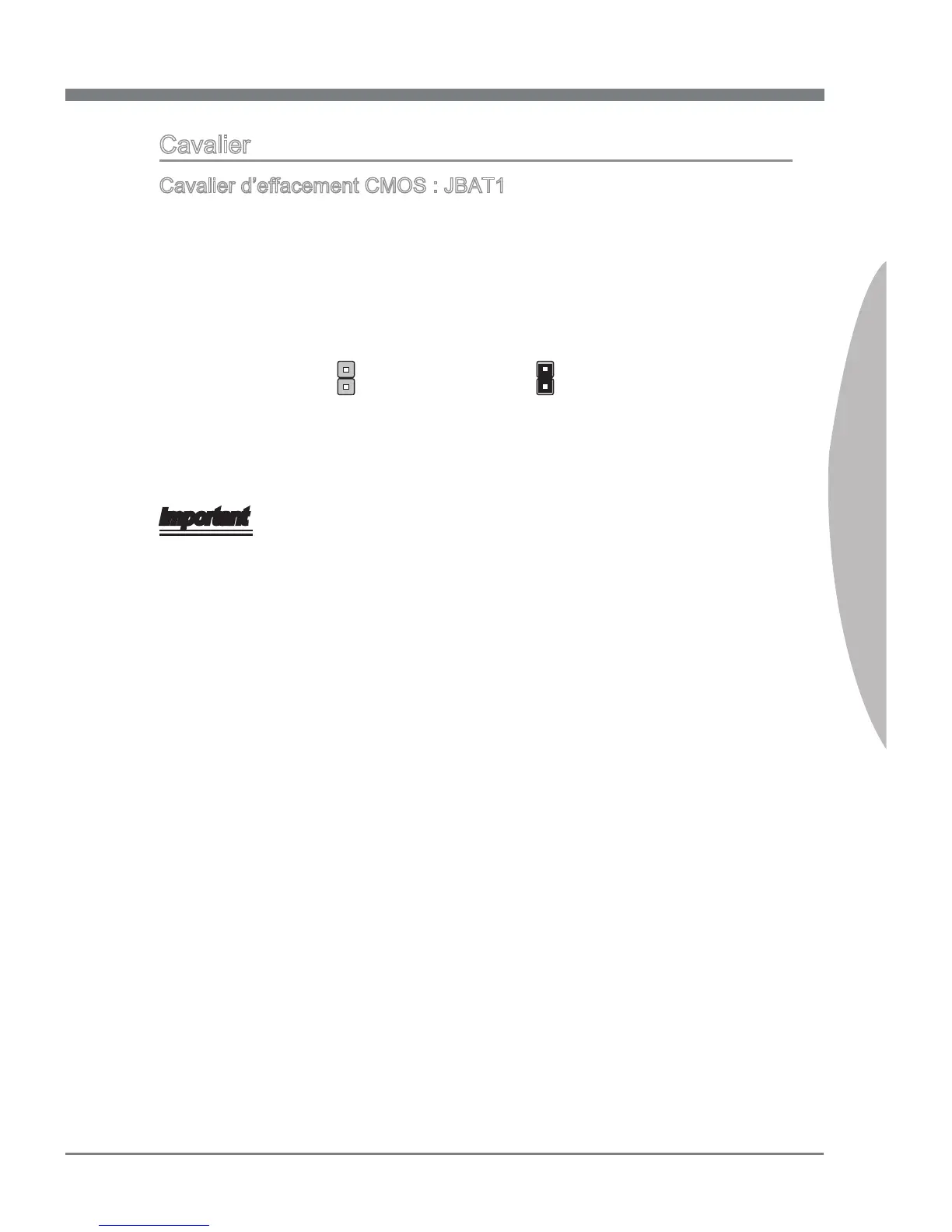 lorsque le système est désactivé. Evitez d’eacer le CMOS pendant que le système est