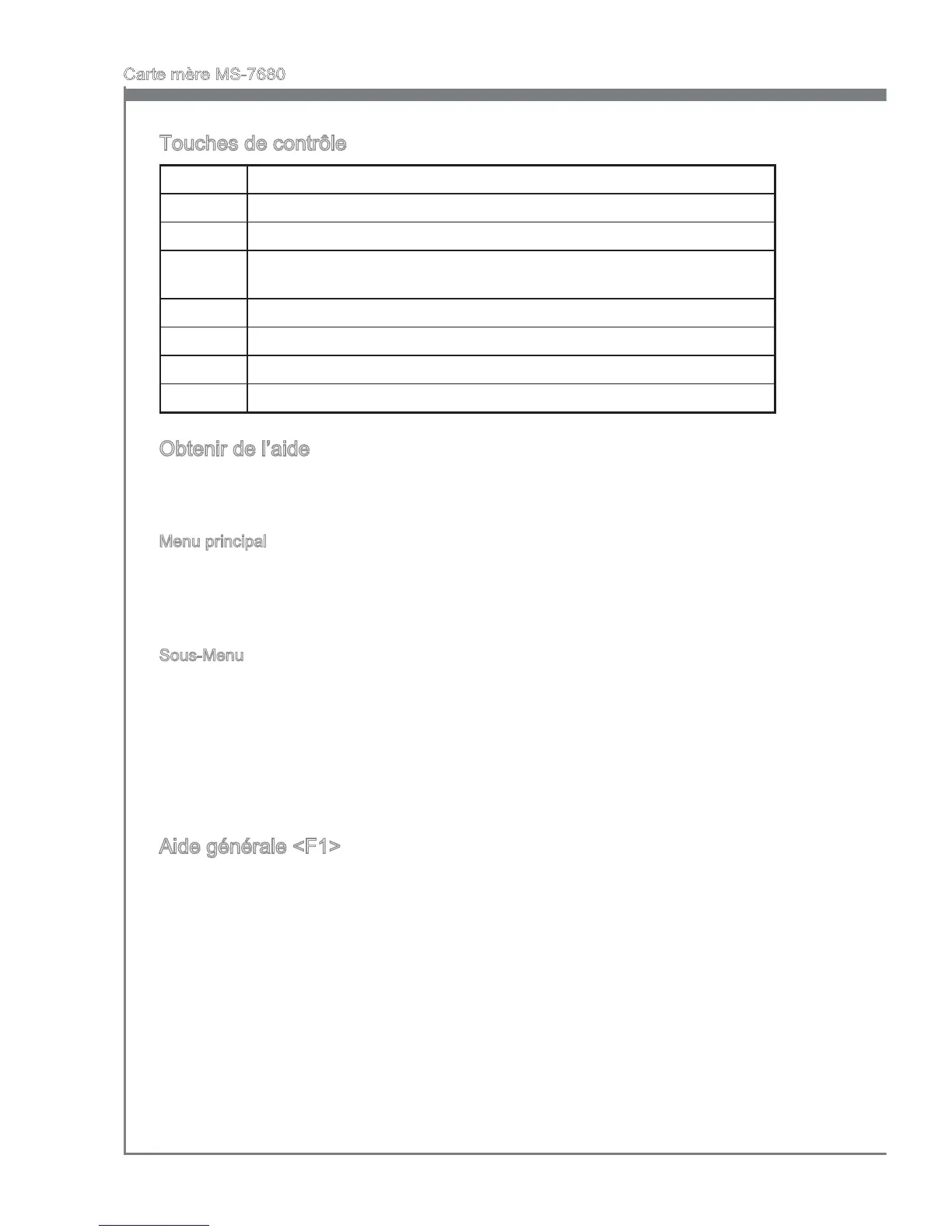 Le programme de réglages BIOS fournit un écran d’aide générale. Vous pouvez faire