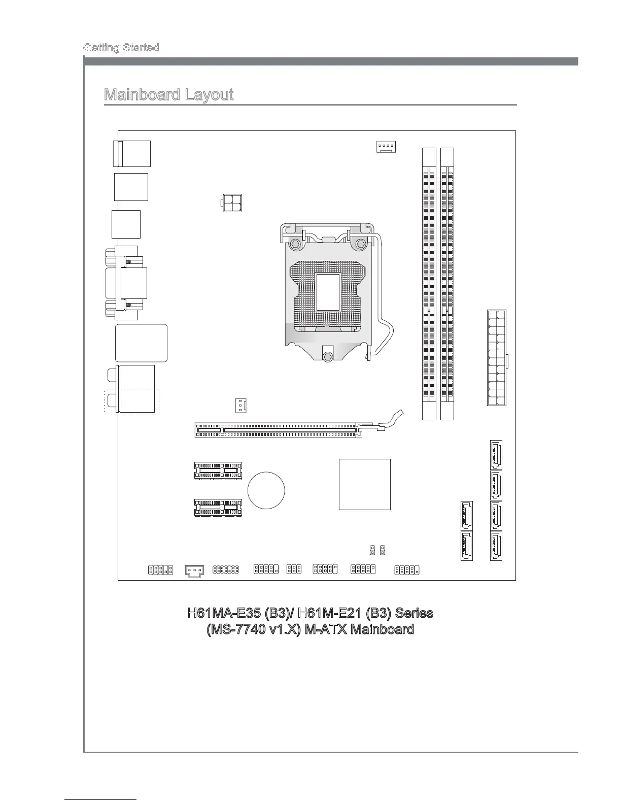 MSI H61MA-E35 (B3) - Mainboard Layout