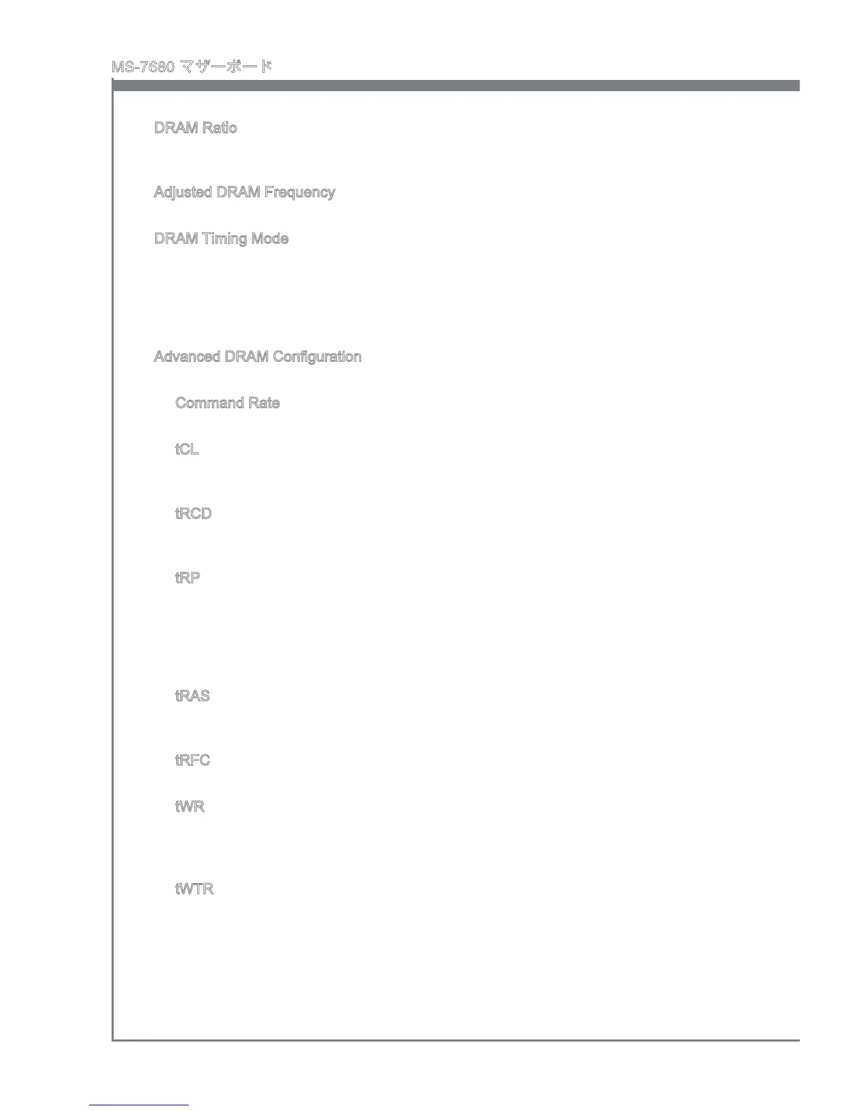 DRAMタイミングを有効にして、以下の[Advanced DRAM Conguraton]メニューが