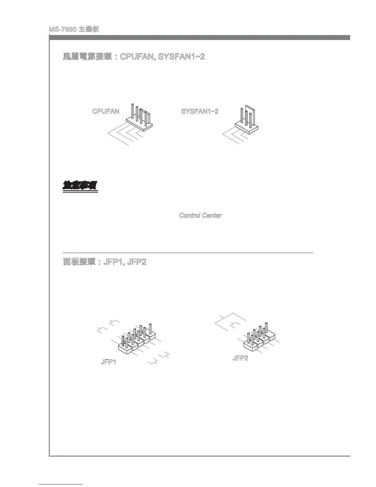 CPUFAN 支援風扇控制功能。請安裝 Control Center 工具程式,會根據 CPU 的實際