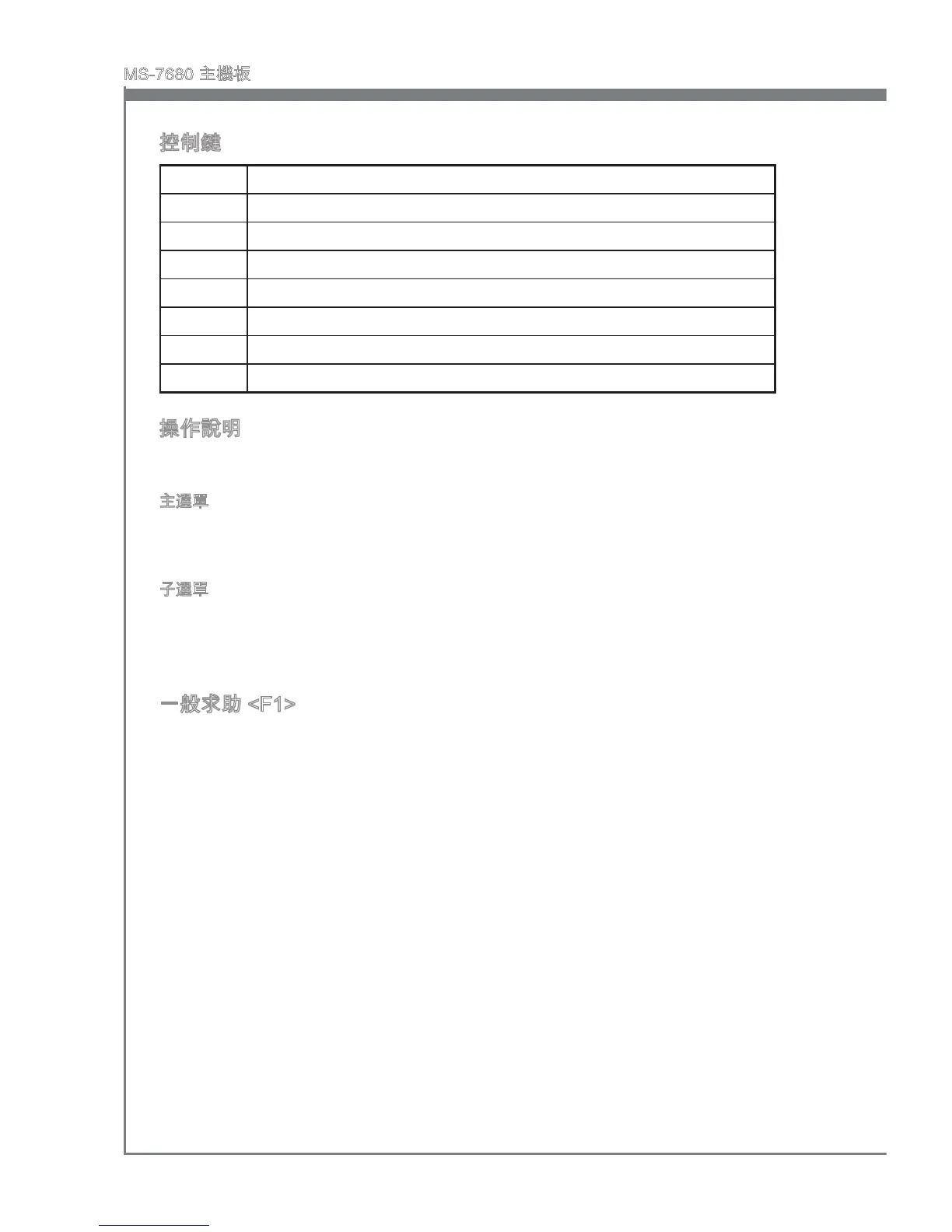 BIOS 設定程式提供一般求助的畫面,你可於任何選單中,按下 <F1> 叫出。求助畫面