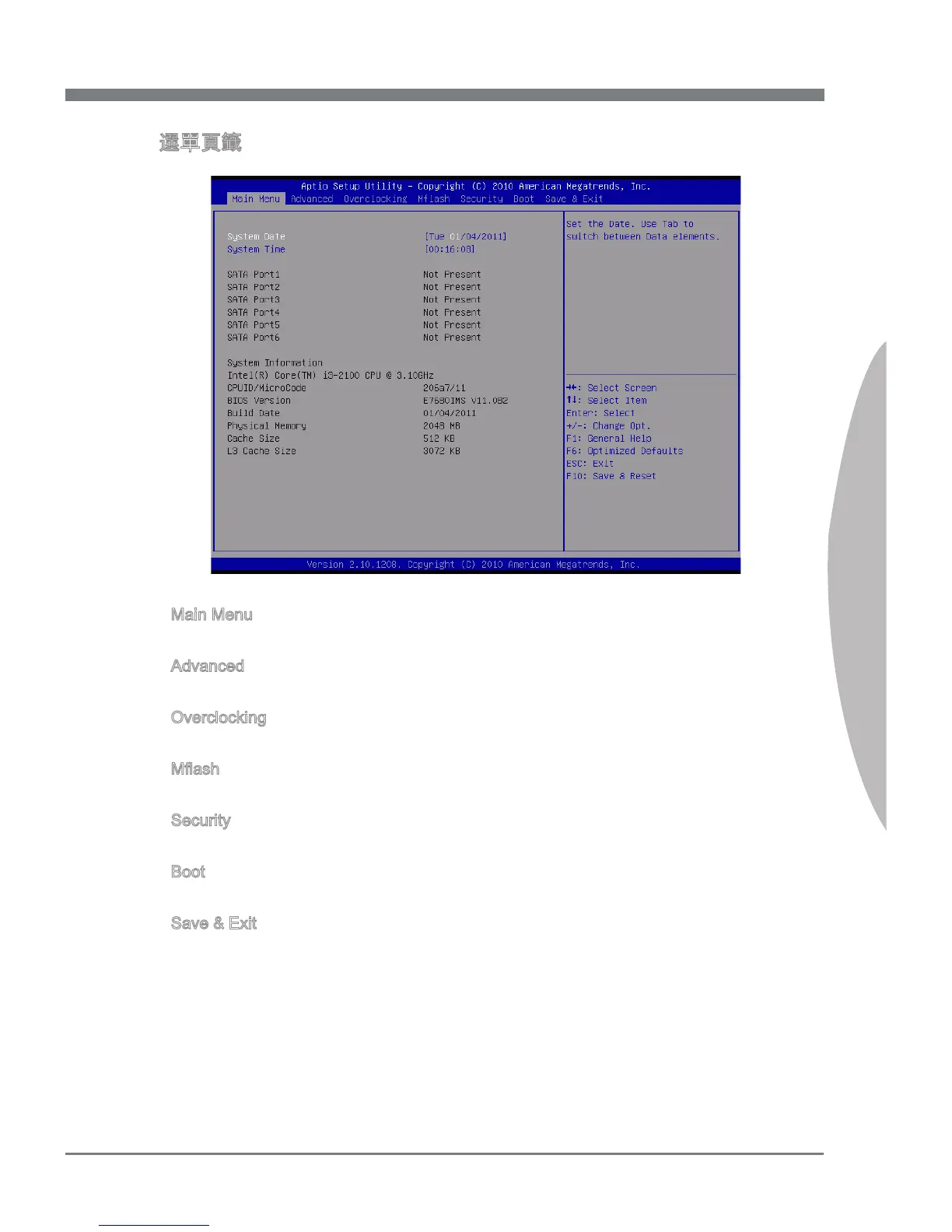本選單在設定 BIOS 預設值或原廠預設值後,儲存或放棄變更後離開 BIOS 公用設定程