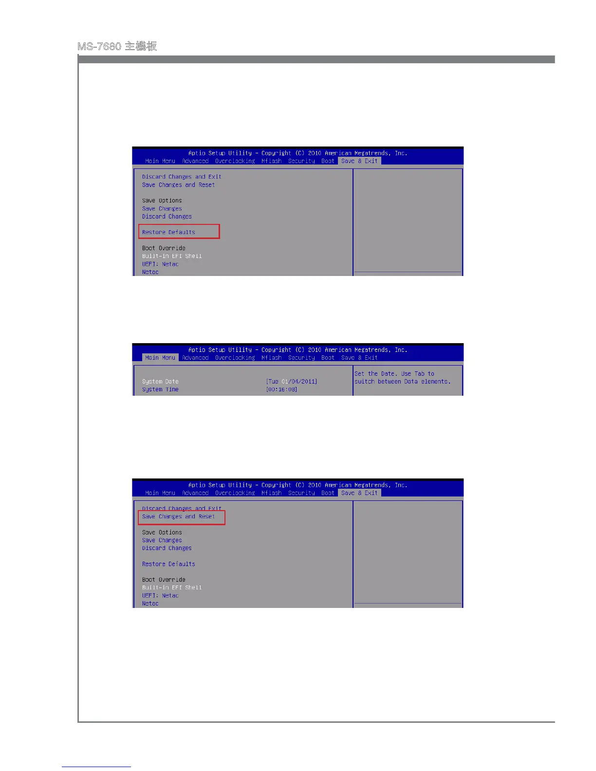 載入最佳預設值:用箭頭鍵( ←, →, ↑, ↓) 選定 [Save & Ext] 頁籤下的 [Restore De