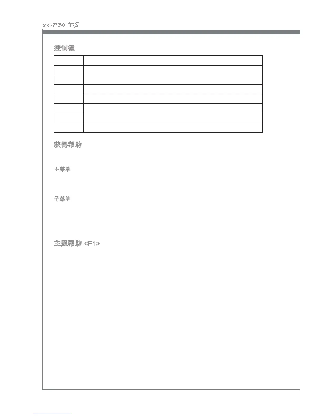 BIOS设置菜单提供您主题帮助的屏幕。您可在任一菜单中按<F1>以唤出此幕。此帮助