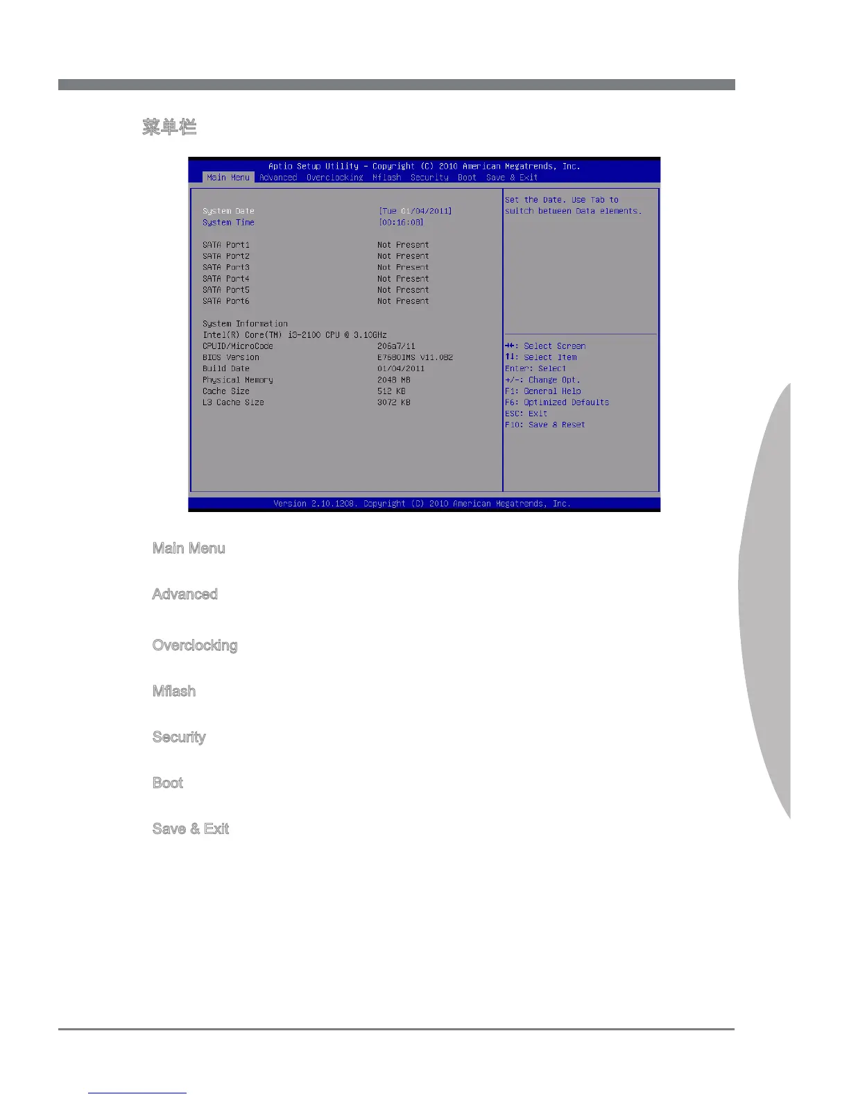 使用此菜单来提供系统基本配置,例如时间,日期等。