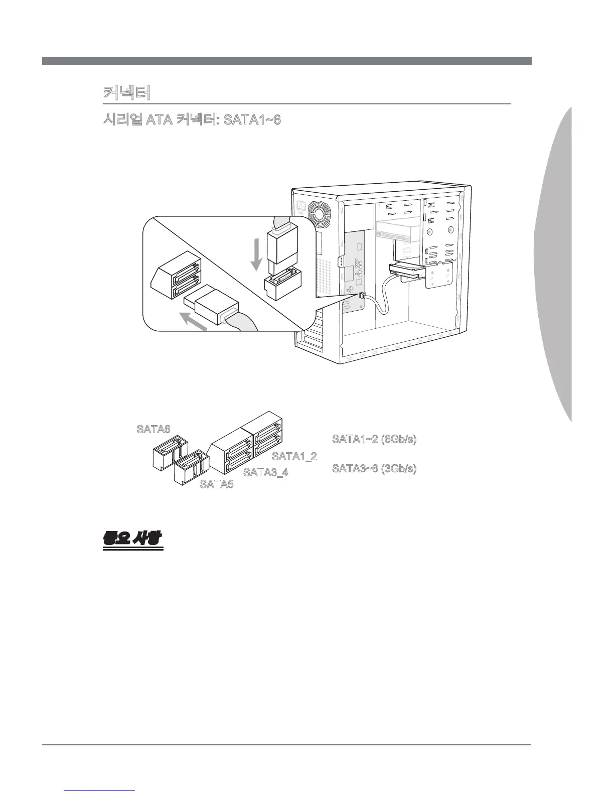 이 커넥터는 고속의 시리얼 ATA 인터페이스 포트에 사용됩니다. 각 커넥터는 하나의 시