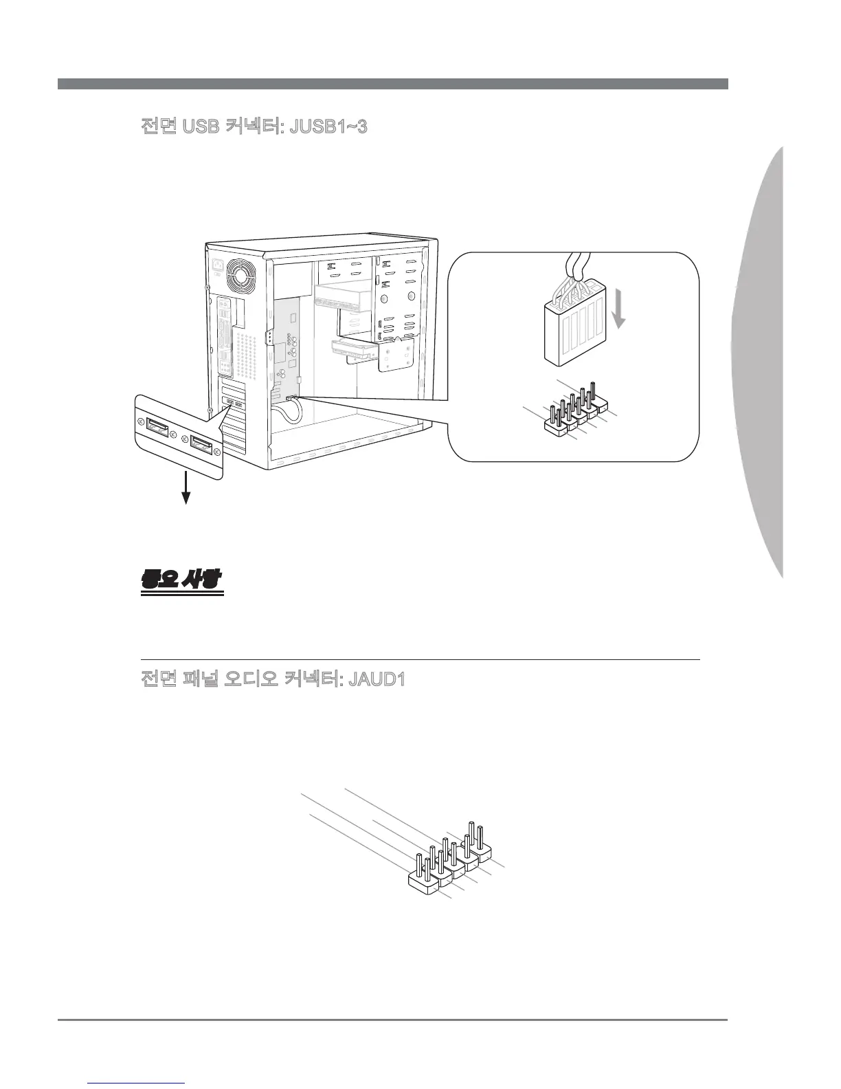 전면 USB 커넥터: JUSB1~3