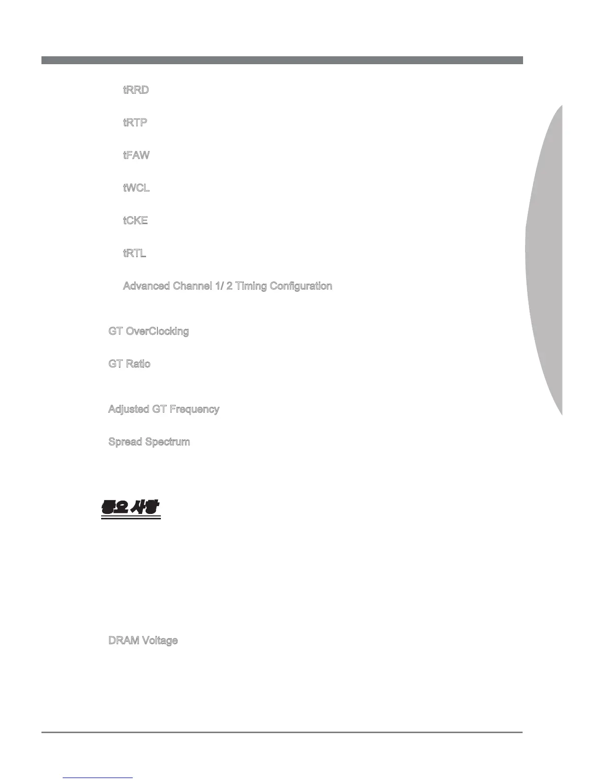 이 항목은 tWCL (Wrte CAS Latency) 타이밍을 설정에 사용됩니다.