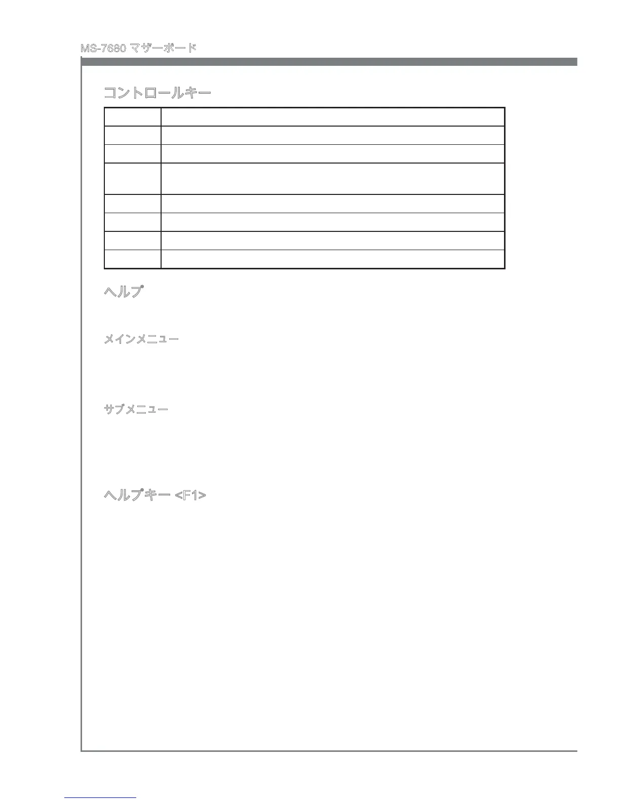 メインメニューにはBIOSが提供する設定項目が各カテゴリー別に表示されます。矢