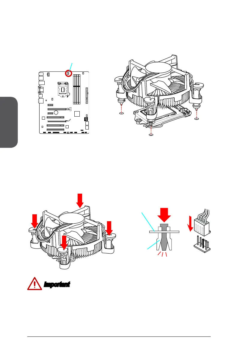 the motherboard. Press the four fasteners down to fasten the heatsink. As each