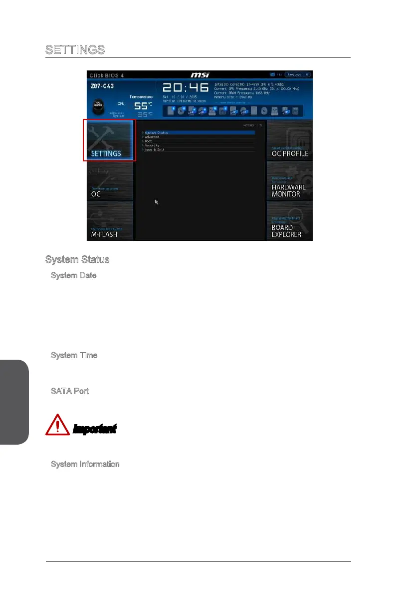 Shows detailed system information, including CPU type, BIOS version, and Memory