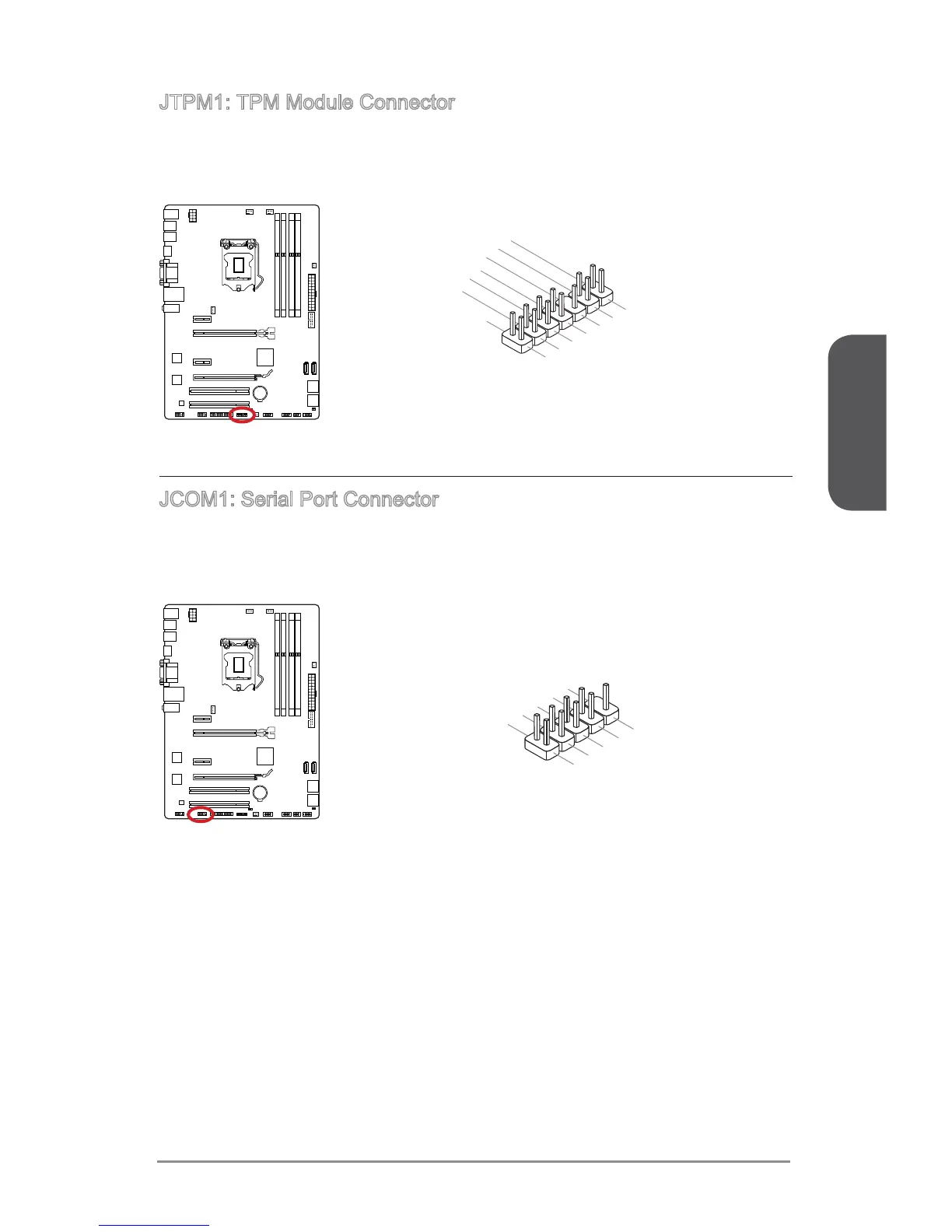 MSI H97 PC Mate - JTPM1: TPM Module Connector; JCOM1: Serial Port Connector