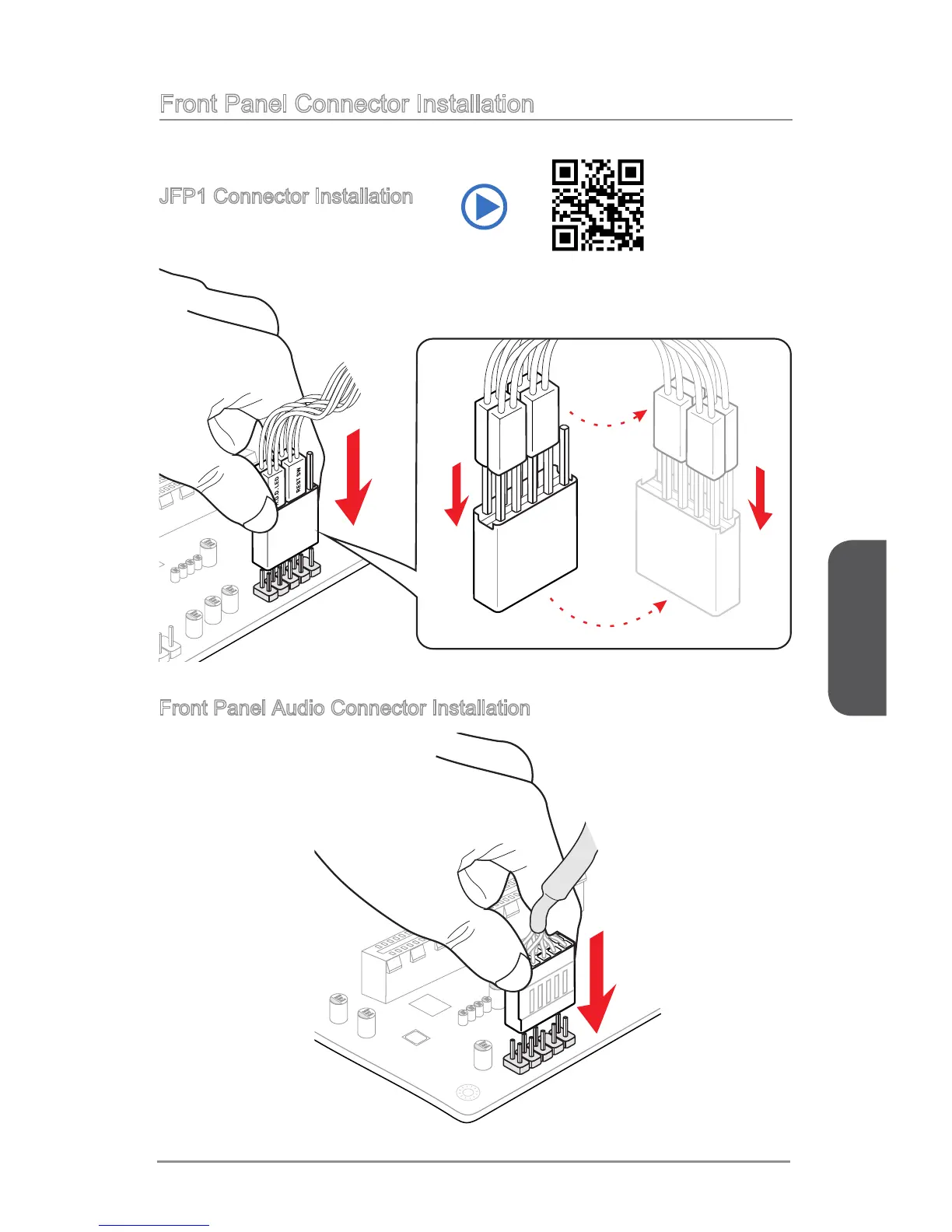 MSI H97 PC Mate - Front Panel Connector Installation; JFP1 Connector Installation; Front Panel Audio Connector Installation