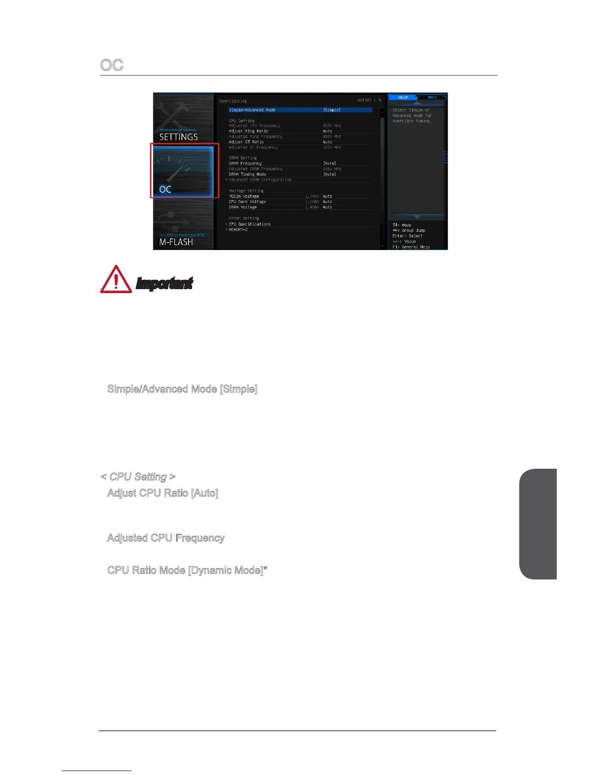 Note: We use * as the symbol for the OC settings of Advanced mode.