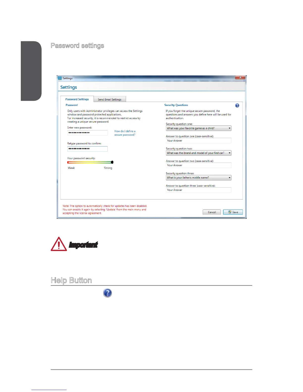 Password settings