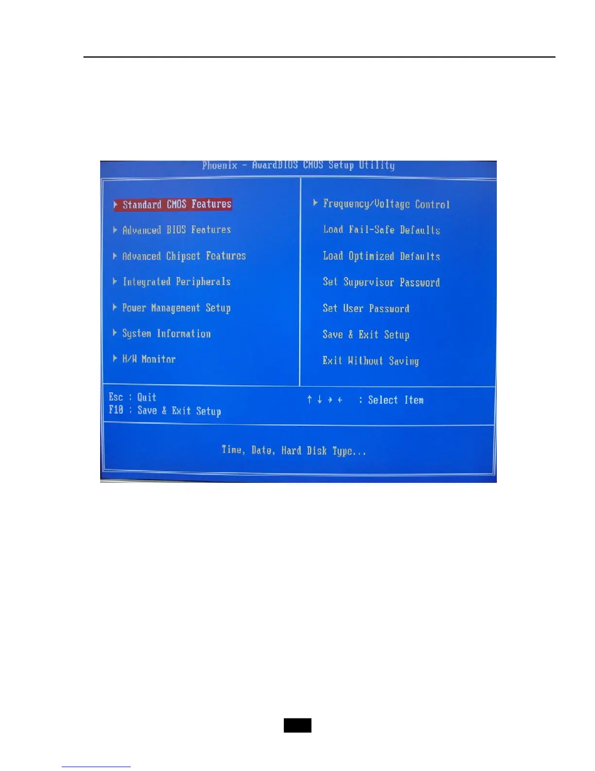 Once you enter AWARD BIOS CMOS SETUP UTILITY, the Main Menu will appear on