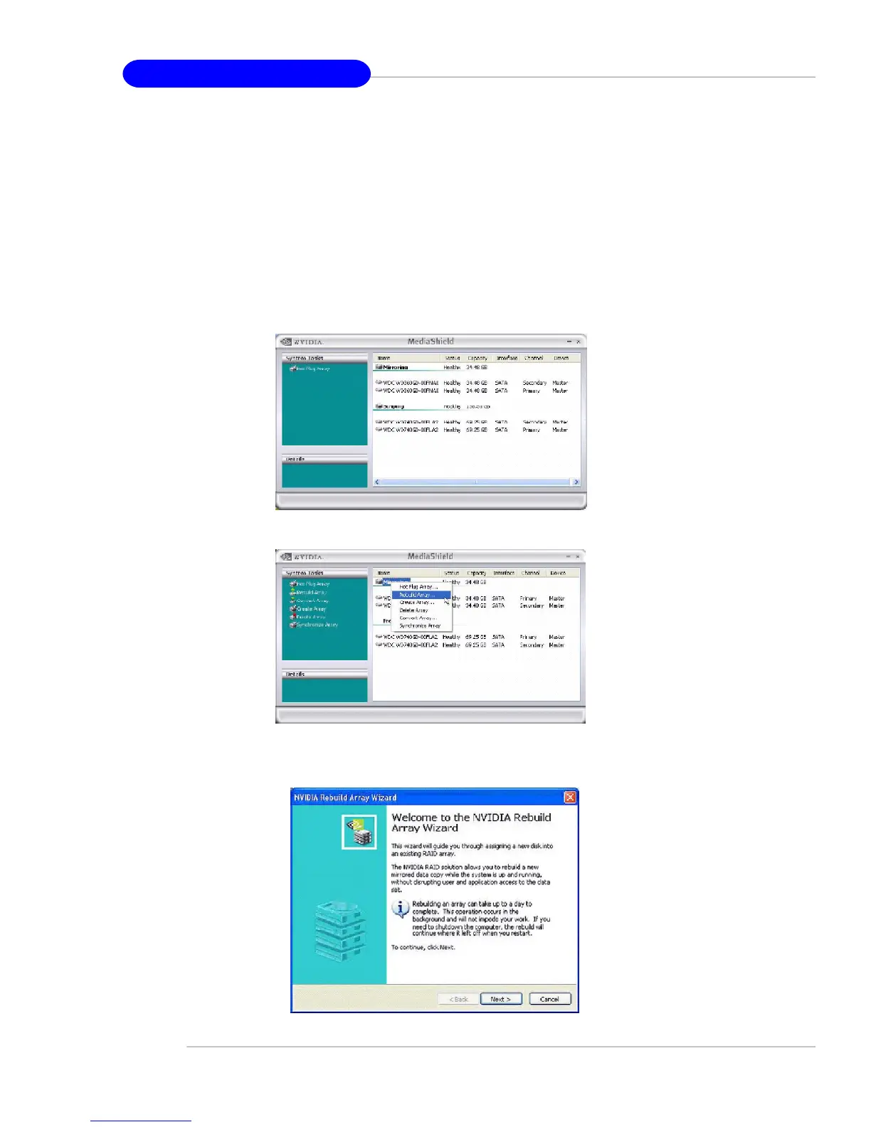 3. From the popup menu, click Rebuild Array. The NVIDIA Rebuild Array Wizard
