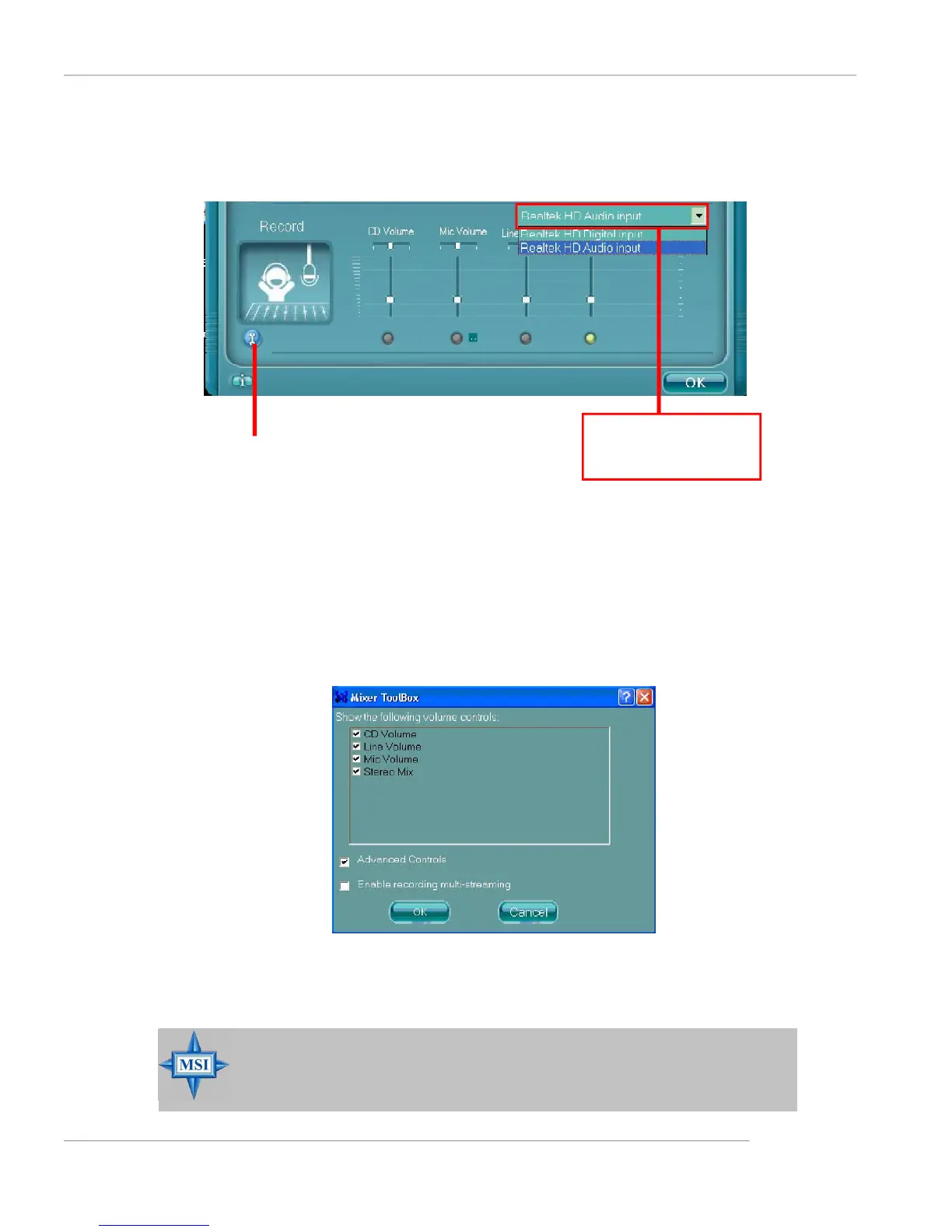 Once this item is checked, you will find “advanced” icon beside “Front Pink In” & “Mic