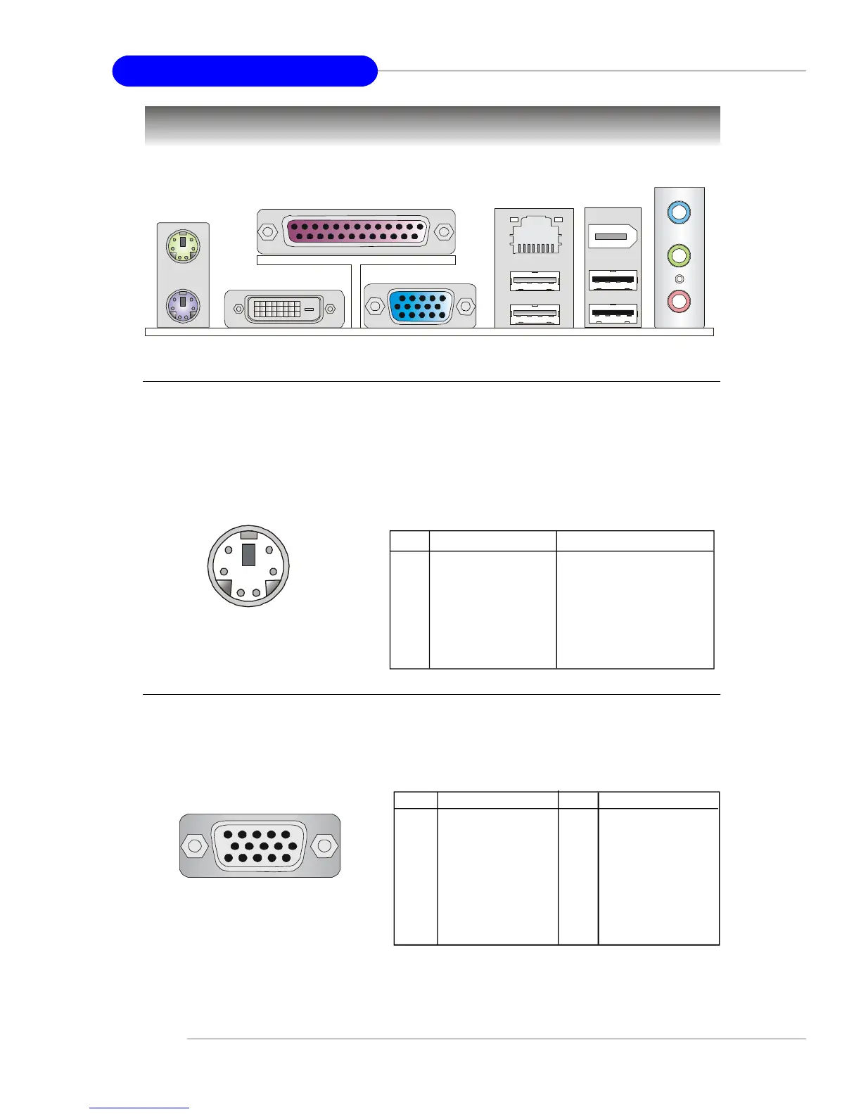 The mainboard provides a DB 15-pin female connector to connect a VGA