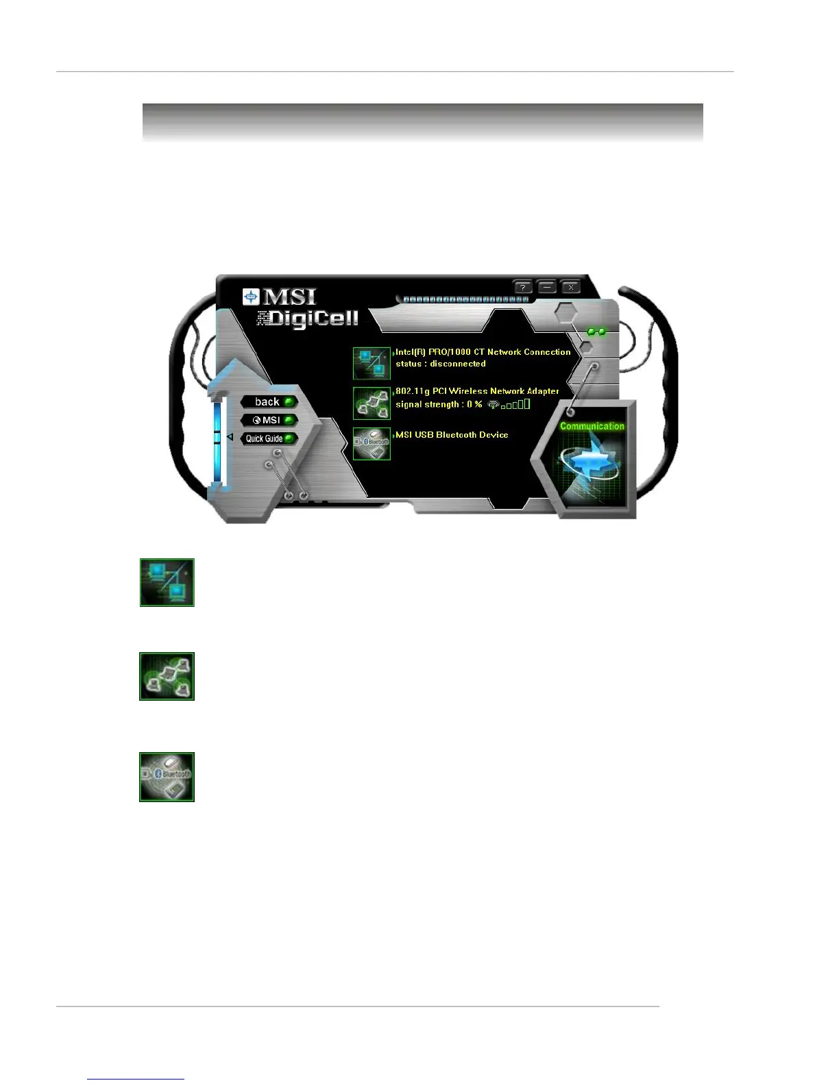 Bluetooth on the screen if the hardware is installed. The first icon indicates the