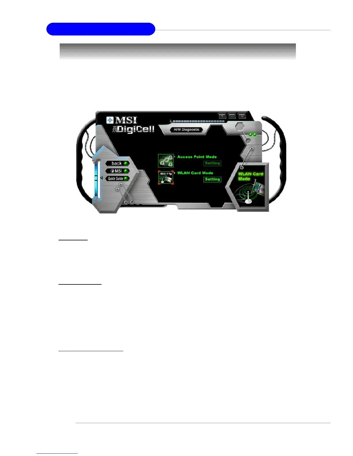 software access point mode is set to WLAN Card Mode. For more advanced