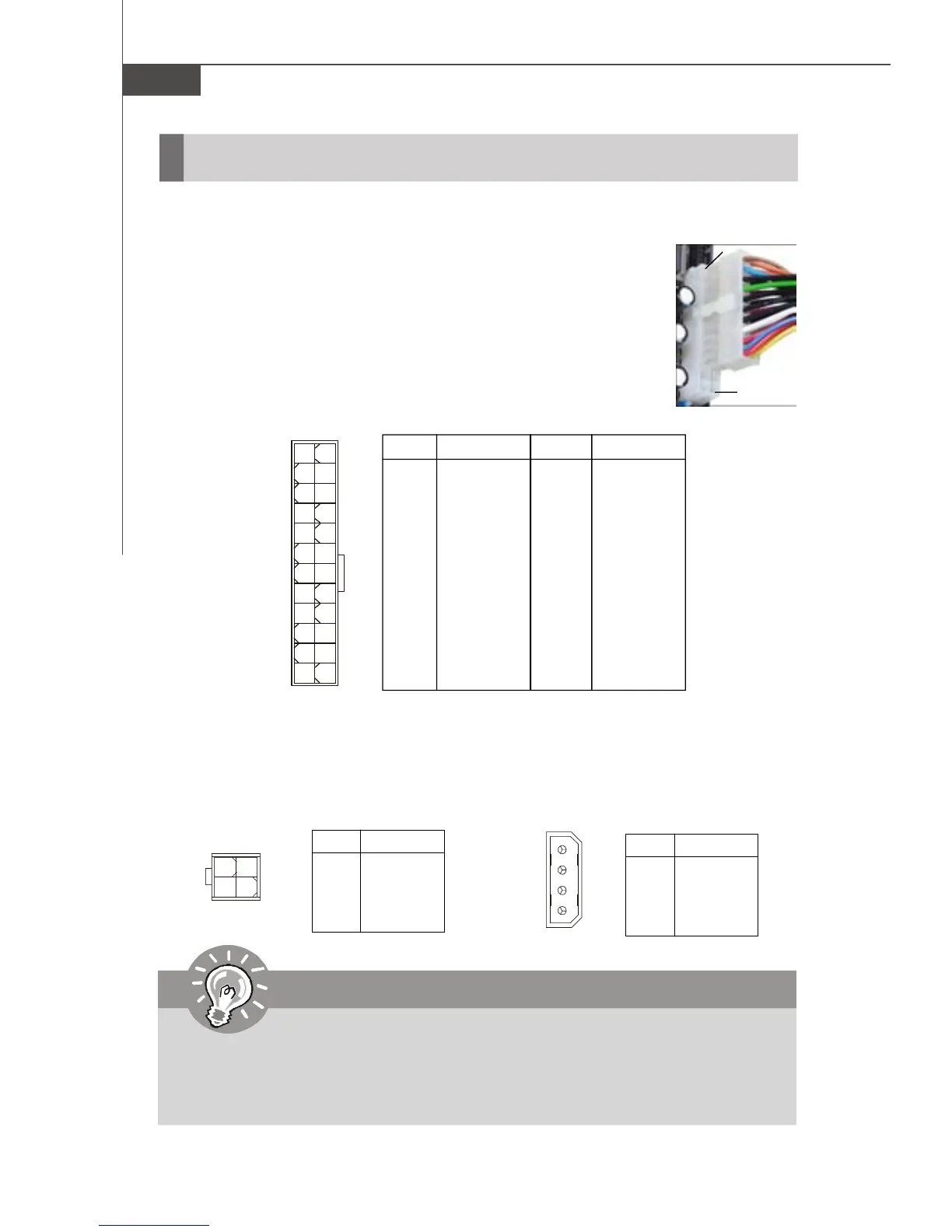 To connect the ATX 24-pin power supply, make sure the plug of the
