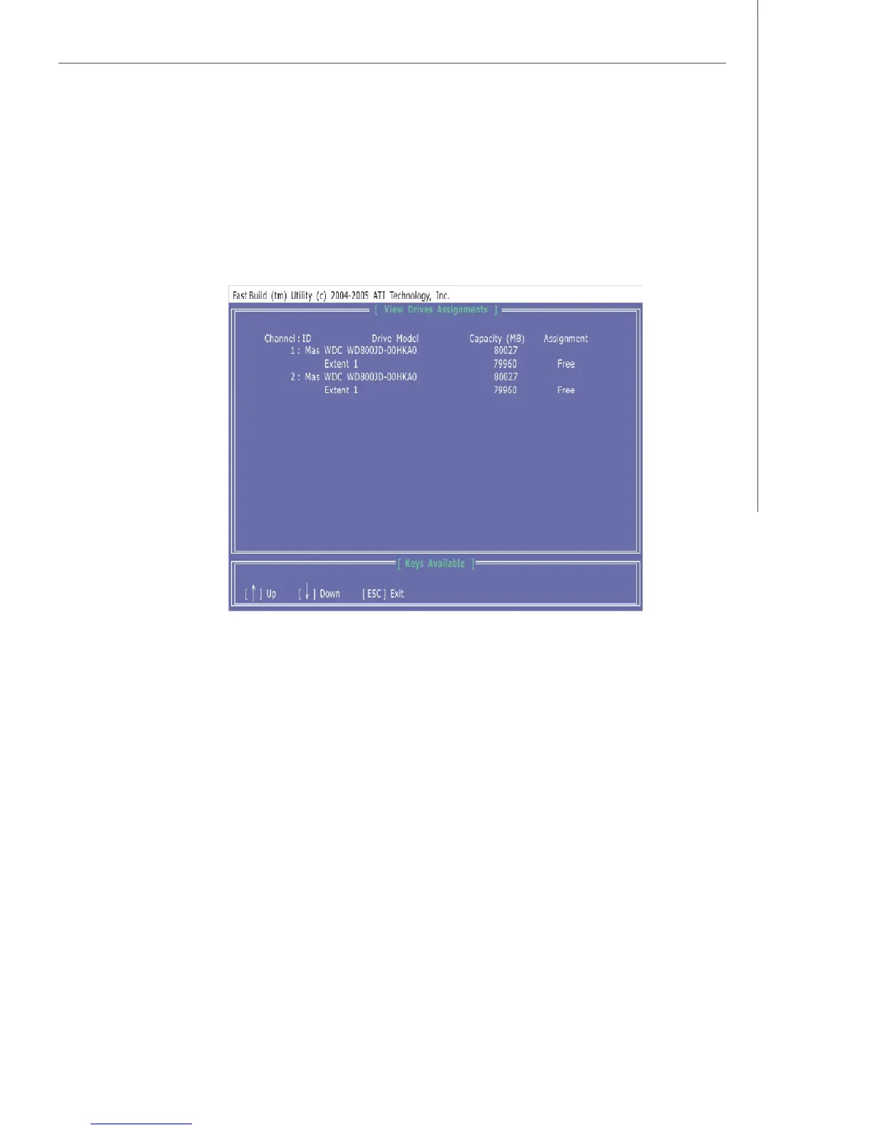 This window displays the model number, capacities and assignment of the drives
