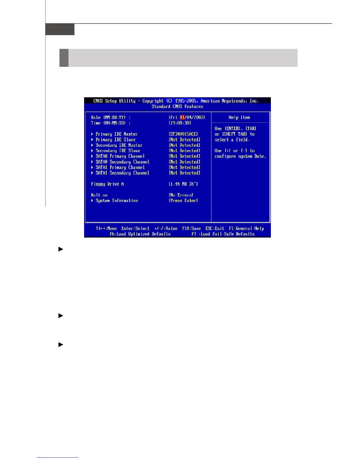 The items in Standard CMOS Features Menu includes some basic setup items. Use
