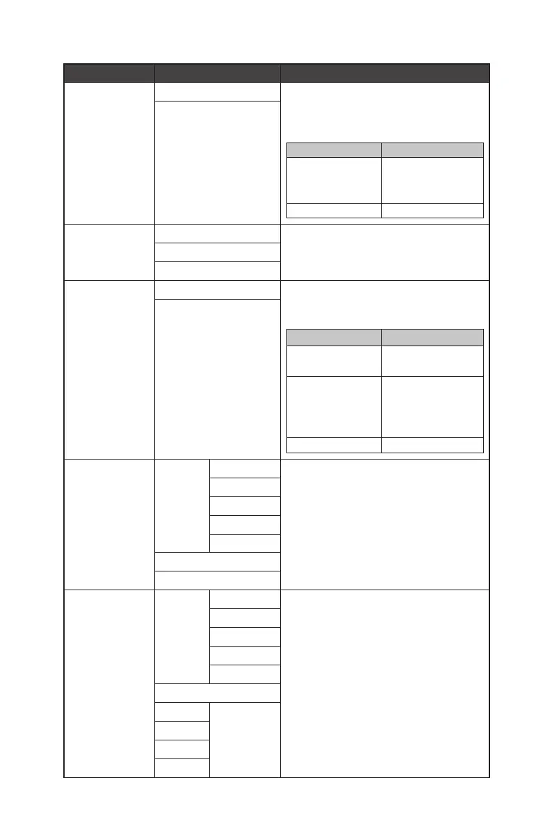 1st Level Menu 2nd/3rd Level Menu Description