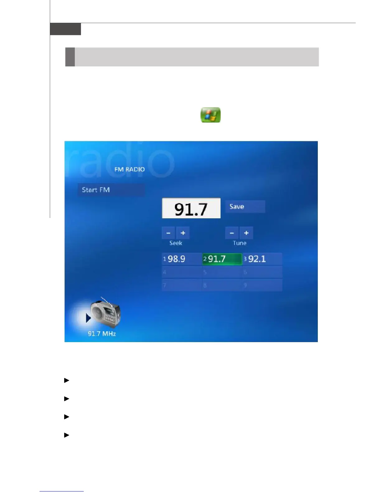 input. In the Media Center Radio window, you can play FM radio stations by using