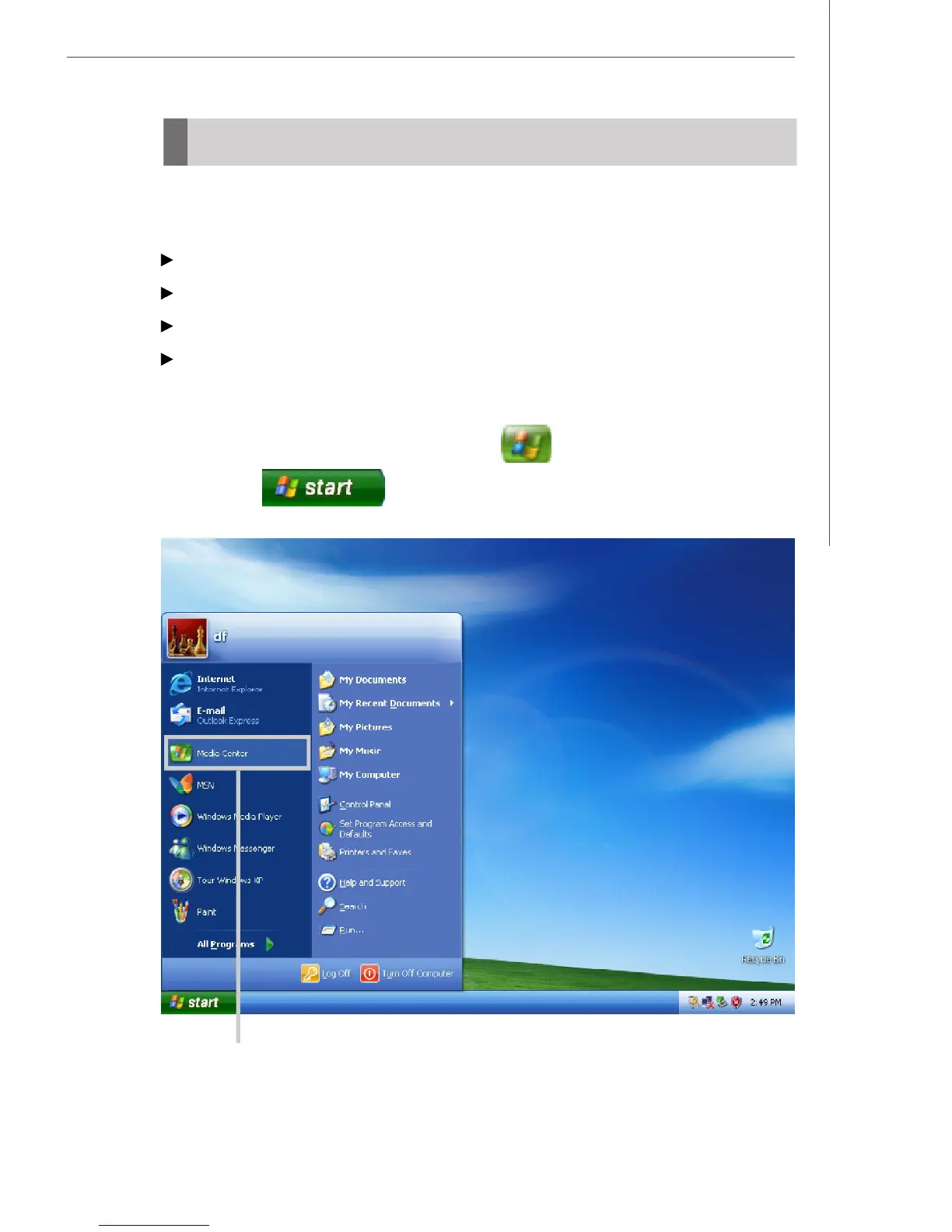 1. Press the Media Center Green Start Button on the remote control. Or,