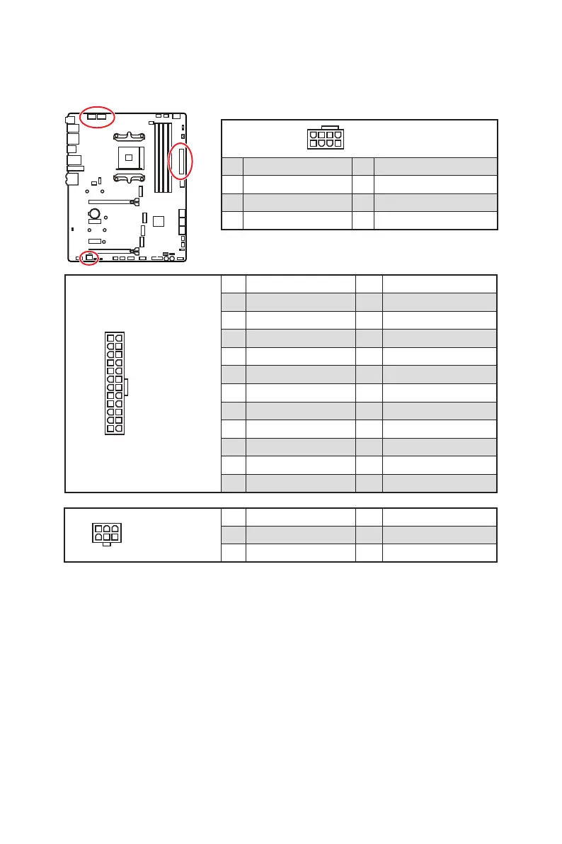 MSI MEG B550 UNIFY - Cpu_Pwr1~2, Atx_Pwr1, Pcie_Pwr1: 電源接頭