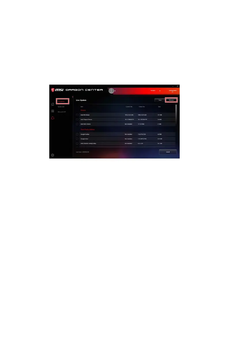 2. Wählen Sie Live Update aus und klicken Sie auf die Schaltfläche Advance.