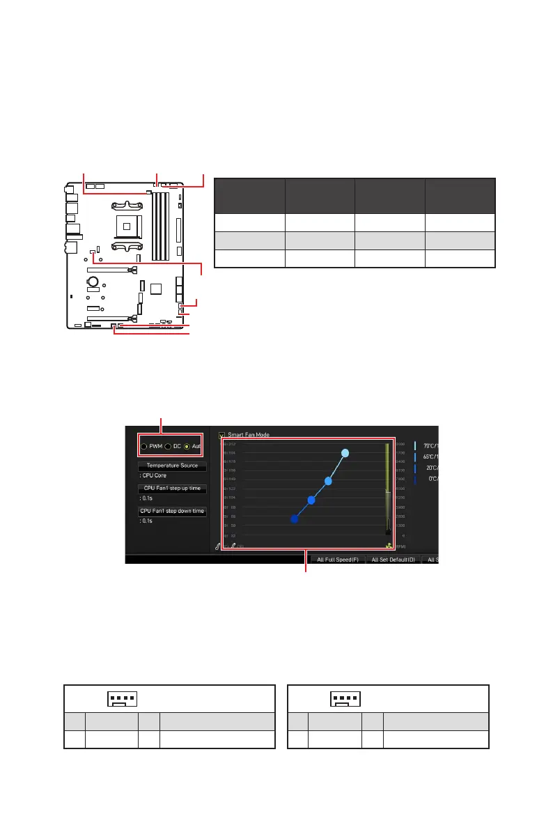 CPU_FAN1, PUMP_FAN1, SYS_FAN1~6: Fan Connectors