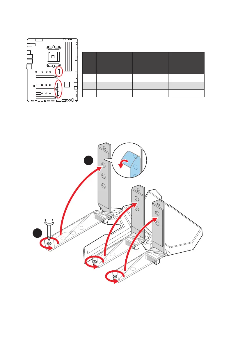 3. For 2242/ 2260 M.2 SSD, please move and fasten the M.2 standoff to the