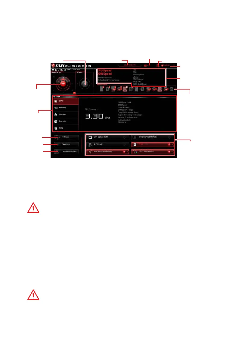 y System information - shows the CPU/ DDR speed, CPU/ MB temperature, MB/ CPU